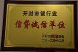開封建業(yè)大宏公司下屬子公司開封建業(yè)森林半島置業(yè)有限公司榮獲開封市銀行業(yè)信貸誠信單位榮譽(yù)稱號
